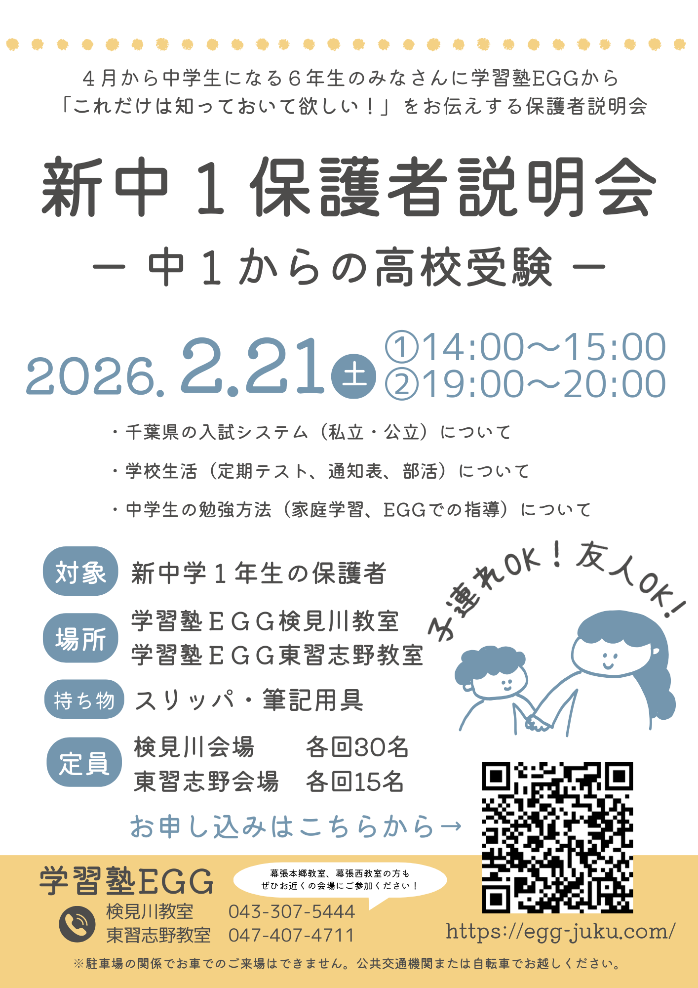 新中1保護者説明会(東習志野教室会場) ※終了いたしました