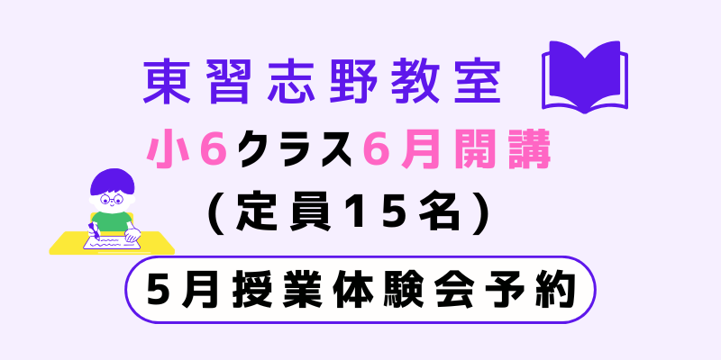 今年度6月より、新しく小学校6年生のクラスを開講します。